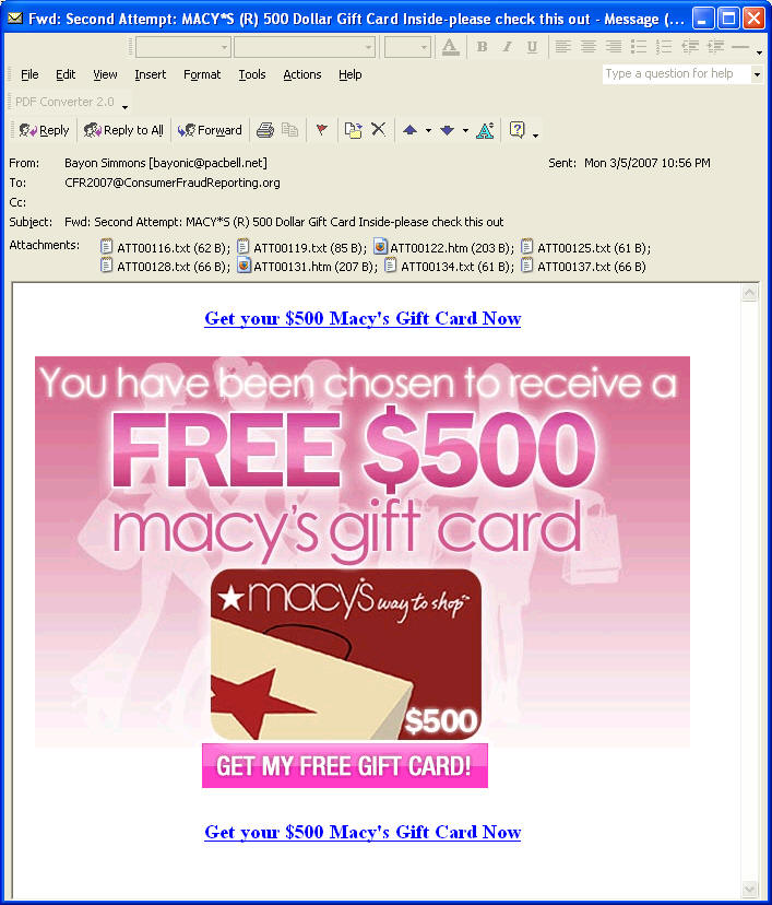 which sends you an email that implies that you won a free laptop computer. In fact, it is simply a marketing scheme to get you to buy their sponsor's products.