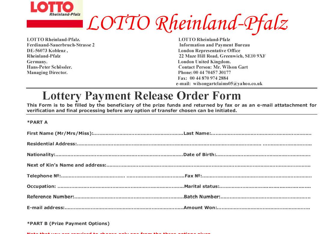 Please find attached to this e-mail, your Lottery Payment Release Order Form.