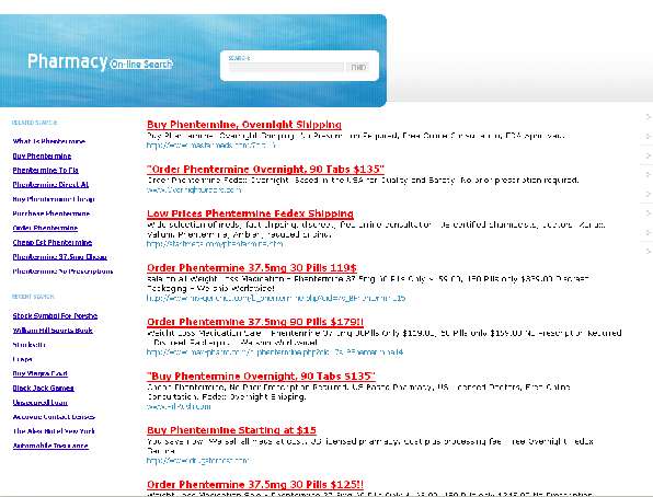 Below is an image of their actual website (http://www.discountsearch.org/search.php?q=phentermine) taken on Jan 12, 2007: