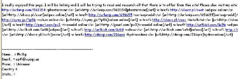 And here is the email received that contained the links (the first link, http://urlsnip.com/563154,  redirected to the page above, http://www.discountsearch.org/search.php?q=phentermine) :